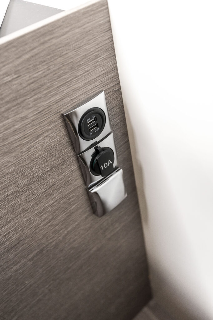 Piccoli dettagli che fanno la differenza differenza: prese USB, botole a pavimento, tetto rivestito in soft-touch, illuminazione LED, tasche portaoggetti in ecopelle, smart TV con supporto orientabile, chaise-longue tra il sedile cabina girevole e il sofà della dinette.