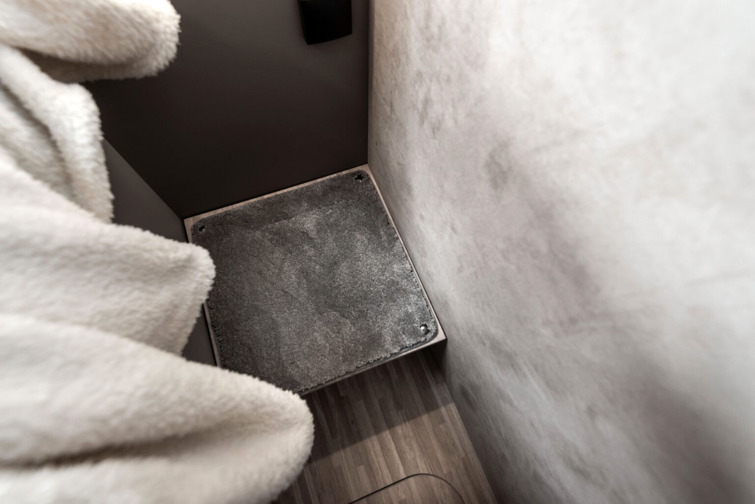 La porta scorrevole in legno ti avvolge in un’atmosfera intima, lontano da ogni distrazione e completa la sensazione di intimità e privacy.