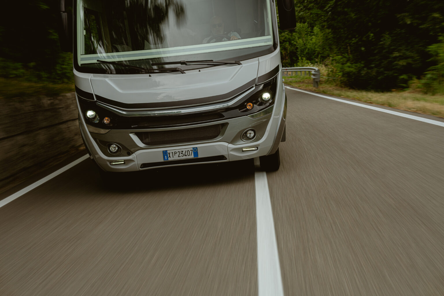 Un motorhome pensato per offrire il massimo comfort, con una zona notte che ospita ampi letti gemelli posizionati sopra un garage di grande capienza.