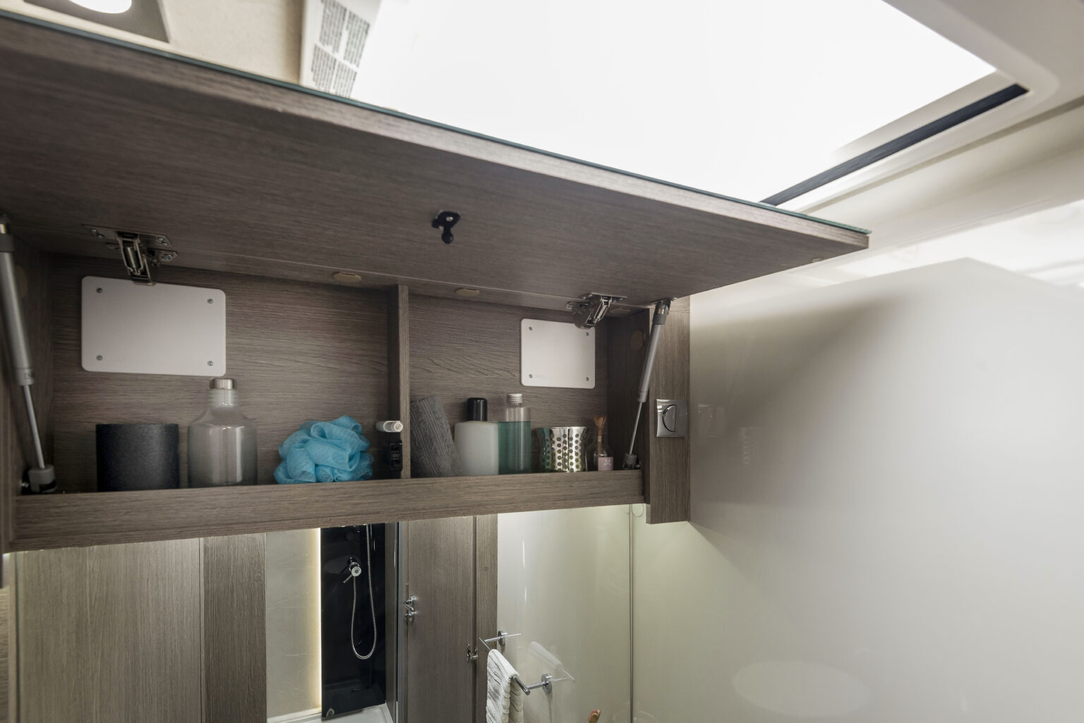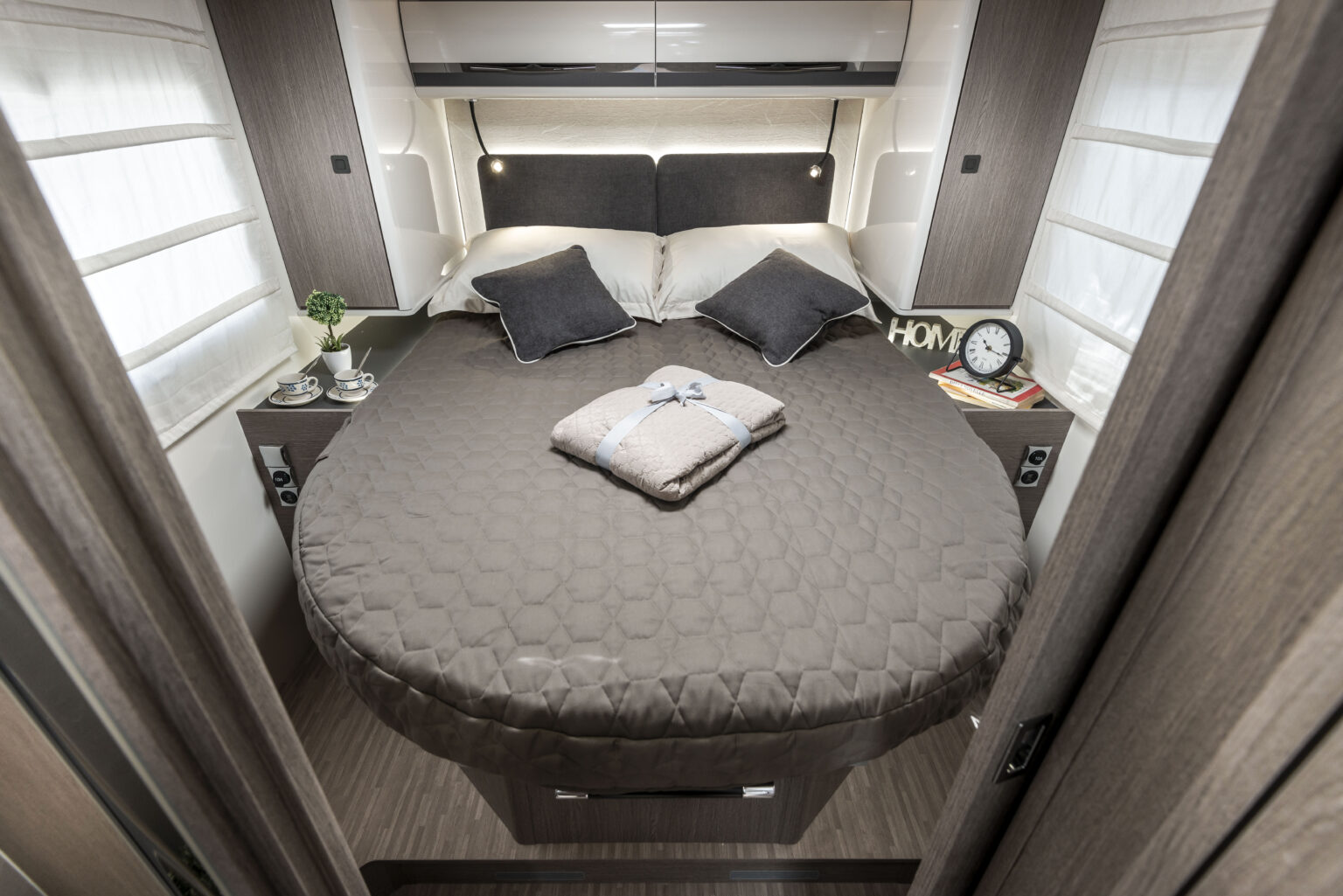 Semintegrale compatto 6,99 metri, letto nautico centrale, con living anteriore face to face, toilette compatta trasformabile e maxi garage per scooter, 4 posti omologati. Un veicolo che non rinuncia a nulla: la zona living si compone di una dinette face to face ampia grazie alla linearità della cucina e del frigorifero. La toilette separata dalla doccia garantisce la massima fruibilità dei servizi e uno spazio ben delimitato per un’area spogliatoio.